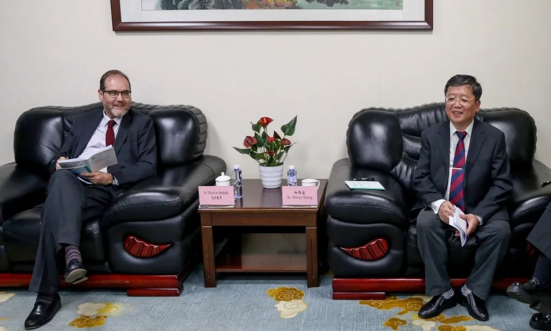 4月11日下午,智利駐華大使烏爾塔多先生在訪川期間到訪四川省農產品經營集團有限公司(以下簡稱“農經集團”)并參觀蜀茶形象店,智利駐成都總領事迪亞茲先生及相關人員陪同到訪。四川省供銷社黨組成員、理事會副主任向偉益,四川省供銷投資集團有限公司黨委書記、董事長茍學川,四川省供銷社農村合作指導處處長、農經集團黨總支書記鮑慶軍,農經集團董事長何昕參加接待,并與烏爾塔多大使一行就加深特色農產品貿易、農業技術合作等進行了工作座談。